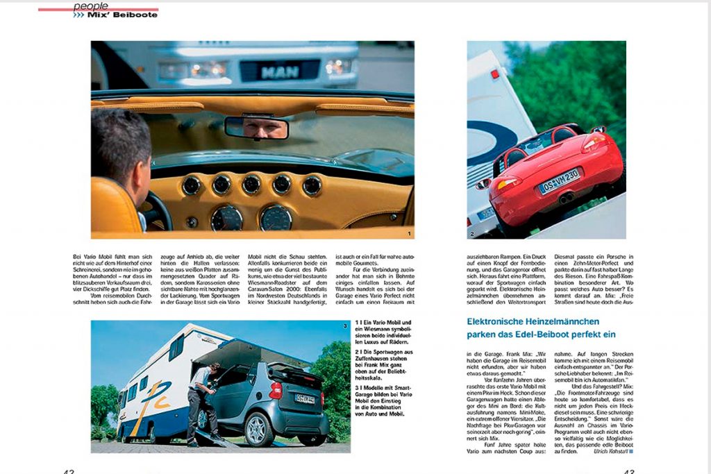 Mix' Beiboote - so benennt die Promobil-Redaktion in der Reportage "People" [Sonderheft Traummobile] die Leidenschaft für schnelle Beiboote. Gemeint sind schnelle Sportwagen an Bord. Ganz selbstverständlich kombiniert VARIOmobil auch diese PS-starken Beiboote  mit exquisiten Reisemobilen.