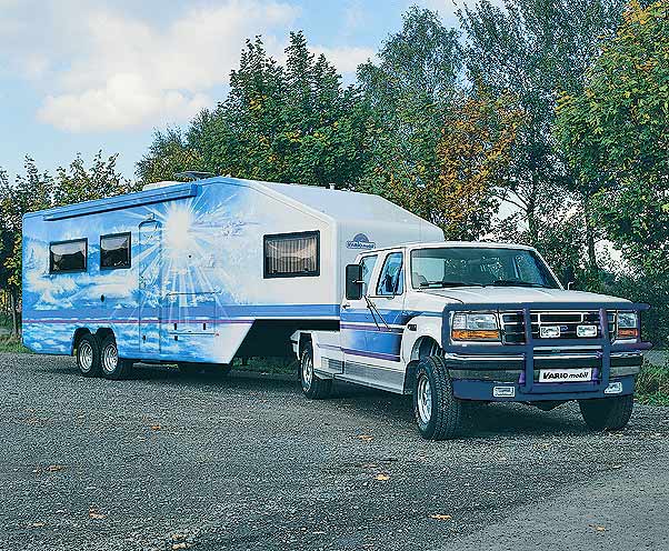 VARIOmobil baut in das Modell Alkoven 900 die erste PKW-Garage in ein Wohnmobil ein. Zahlreiche weitere Modelle folgen. Z.B. der VARIO Perfect, der optional auch über eine exklusive Airbrush-Lackierung verfügt.